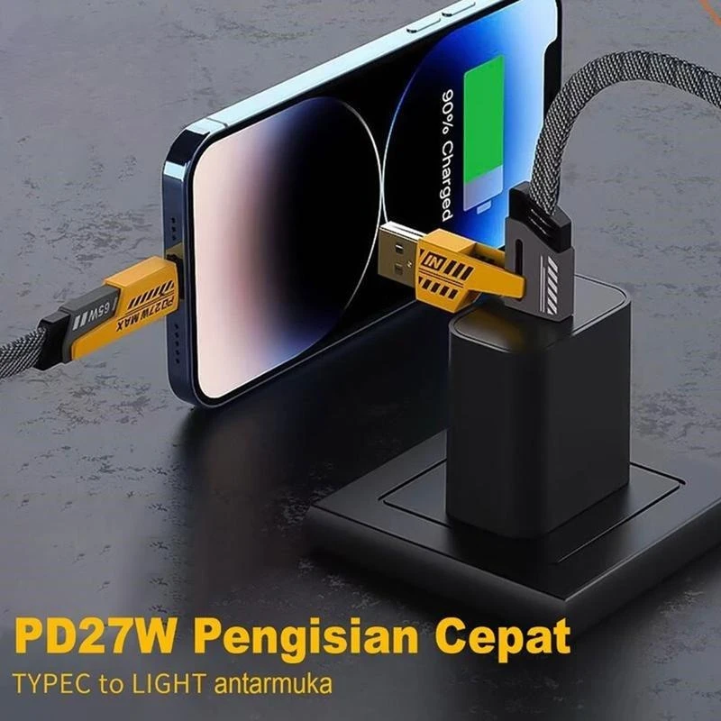 Jaspan JK-06 Data Cable 4-in-1 Fast Charging PD 27W Fast Charging Cable Charger TYPE C & LIGHTNING Multifunction